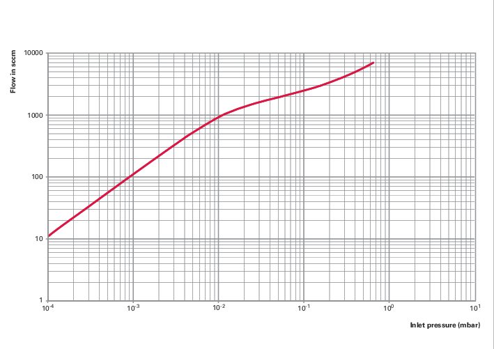 真空设备的流量 - 入口压力特性曲线,展示流量随入口压力的变化规律