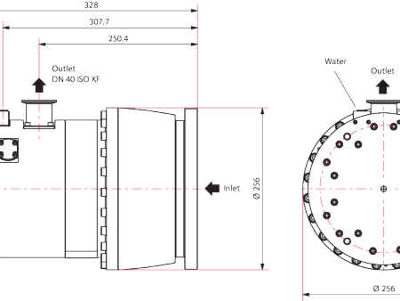 真空设备部件尺寸图,显示了带有 DN 40 ISO KF 规格出口的部件外形尺寸