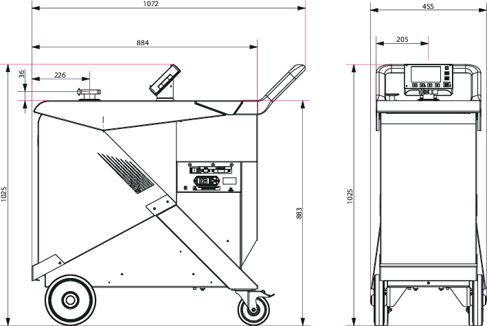 ASM 系列氦质谱检漏仪的尺寸工程图, 它通过不同视角的线条和标注,呈现出该检漏仪的长、宽、高等具体尺寸规格, 便于在生产、安装、运输等环节对设备的外形空间参数进行把控。