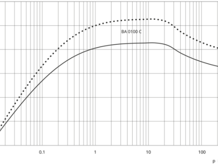 普旭(Busch)COBRA BA 0100 C 罗茨真空泵的性能曲线图表,展示了该真空泵在不同压力(单位:hPa(mbar))下的抽气速率(单位:m3/h)变化情况。