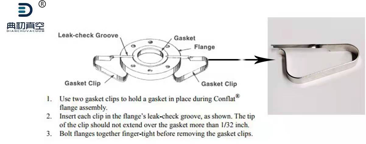 真空法兰垫片夹(Gasket Clip,也称为 CF 法兰垫片固定夹)。