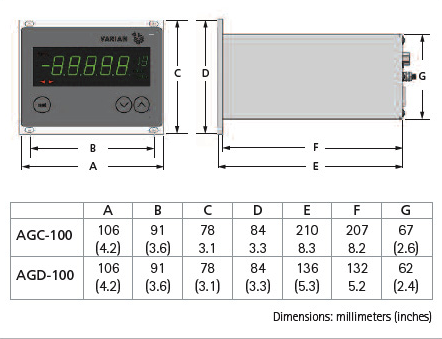 AGD-100 为用于 FRG-700/702、PVG-5xx 和 PCG-75x 系列主动式真空规的经济型单通道显示选件。