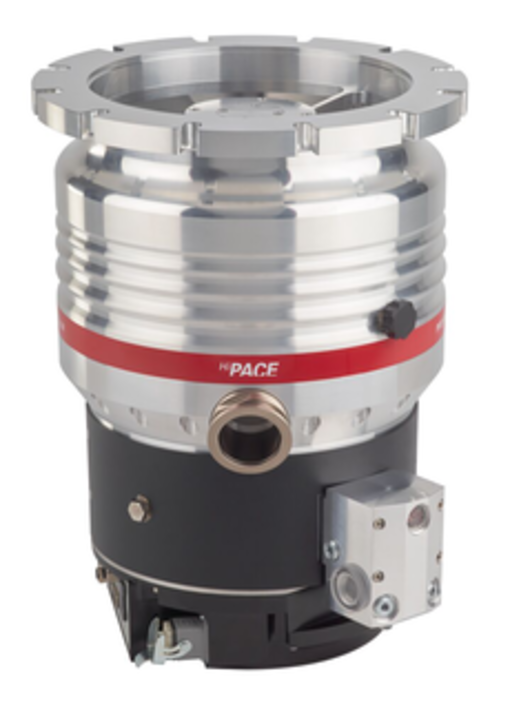 普发真空(Pfeiffer Vacuum)生产的涡轮分子泵。涡轮分子泵通过高速旋转的转子叶片,对气体分子施加动量,使其从进气口向排气口移动,从而达到抽气并获得高真空或超高真空环境的目的。