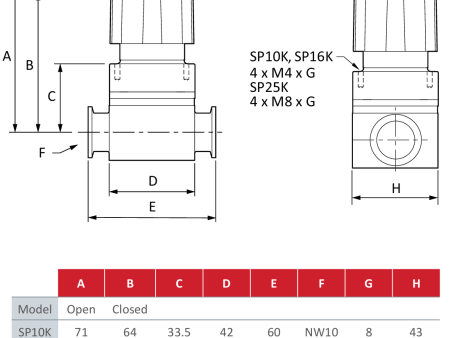 阀门端接在NW法兰上,可采用管道支撑或面板安装。(SP40K仅支持管道)