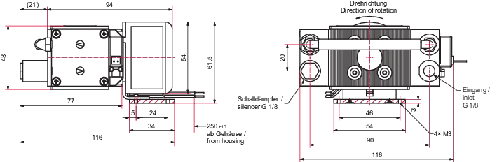 普发真空 MVP 003-2 型干式隔膜真空泵,属两级无油设计,紧凑轻便、无油污染,适配分析仪器及真空系统前级泵场景。其抽速与压力特性适配低真空需求,接口为 G1/8 规格,安装孔 4×M3,兼具小型化与实用性,是实验室及轻工业真空应用的高适配设备。