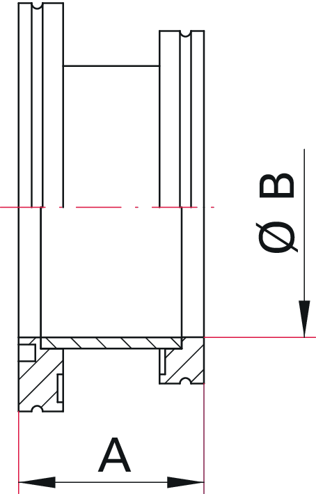 它用于实现真空管路或设备间不同规格接口的转接,图中尺寸 “A” 和 “∅B” 分别标注了关键安装与接口参数,常见于半导体、真空镀膜等工业领域的真空系统集成,是保障真空通路稳定连接的关键配件设计图。