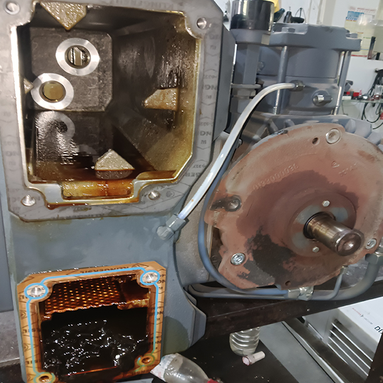 油乳化或油色异常:通常由系统内进水或冷凝引起,需更换机油并查找进气端的冷凝/水汽来源,必要时加装冷阱或干燥装置。