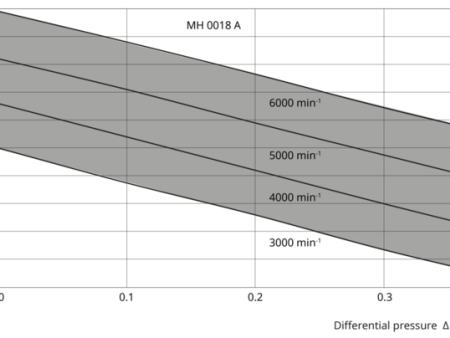 MH 0018 A 型爪式真空泵的抽速 - 压差特性曲线,展示了该型号泵在不同转速(3000~6000 min⁻¹下,抽速(V˙,单位 m³/h)随压差(Δp,单位 bar)变化的性能规律,用于指导该泵在不同工况下的性能评估与系统适配,是真空系统设计的核心技术参考图表之一。