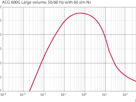普发真空(Pfeiffer Vacuum)ACG 600G 干式螺杆真空泵的抽速曲线,用于呈现该泵在 50/60Hz 工作频率下,抽气速率(纵轴,单位 m³/h)随入口压力(横轴,单位 hPa)的变化规律,是评估其真空性能的关键图表之一。