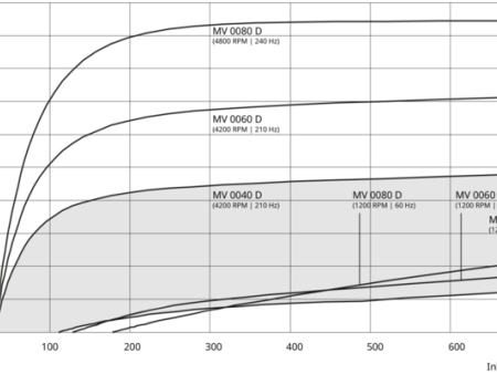 BUSCH(普旭)MINK MV 系列爪式真空泵的抽速 - 压力性能曲线,展示了 MV 0080 D、MV 0060 D、MV 0040 D 等型号在不同转速 / 频率下的抽速(单位:m³/h)随压力(单位:hPa/mbar)的变化关系,可辅助工业场景根据工况选择适配型号。
