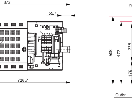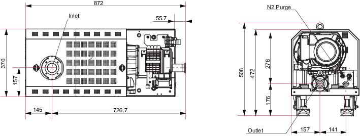 从图纸标注的 “N2 Purge(氮气吹扫)”“Inlet(进气口)”“Outlet(出气口)” 等元素,结合其结构风格,可判断它属于普发真空真空设备的技术图纸类资料,用于展示该型号真空泵的外形尺寸、接口位置等参数,为设备的安装、集成提供精确的尺寸参考。