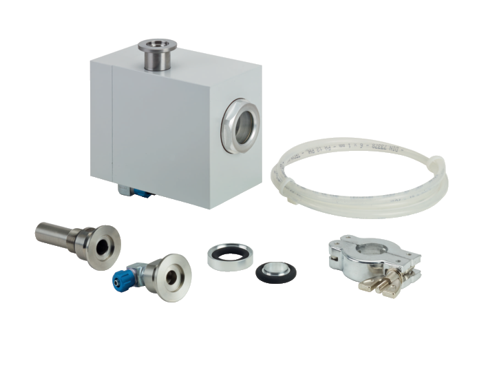 它包含方形金属腔体(带观察窗和真空接口)、真空管路连接件(如 KF 接口接头、卡箍)、密封件及软管等配件,主要用于科研实验或小型真空工艺测试,可搭建起封闭的真空环境,满足材料分析、气体检测等场景对低气压环境的需求,是真空实验平台的基础组成部分。