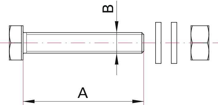 它通常采用不锈钢或碳钢材质,通过螺纹连接实现部件紧固,广泛应用于机械、设备、管道等工业场景,具备强度高、拆装方便的特点。图中尺寸 A 代表螺栓长度,B 代表螺杆直径,可根据不同工况选择对应规格,是工业装配与维修中的基础紧固件。