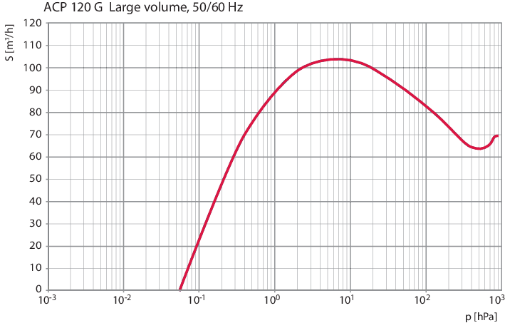 普发真空(Pfeiffer Vacuum)ACP 120 G 大容积型多级罗茨泵的抽速特性曲线。