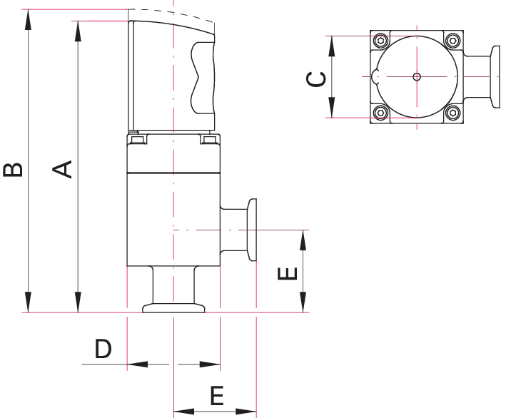 阀体采用 316L 不锈钢 + 氟橡胶密封,真空漏率低至 1×10⁻⁹mbar・L/s,红色手动旋钮操作便捷,KF 快装接口适配主流管路,-20~120℃工况稳定,耐腐抗污易清洁,是精密真空通路的可靠控制部件。
