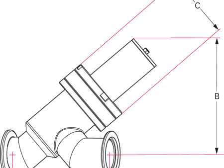 手动真空角阀的安装尺寸图,是该阀门的配套技术图纸,对应手动真空角阀,图中标注了 A、B、C 等关键安装尺寸参数,用于指导该真空角阀在真空系统中的安装适配,帮助确认其安装空间与连接匹配情况,是该阀门安装时的重要参考图纸。