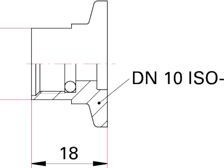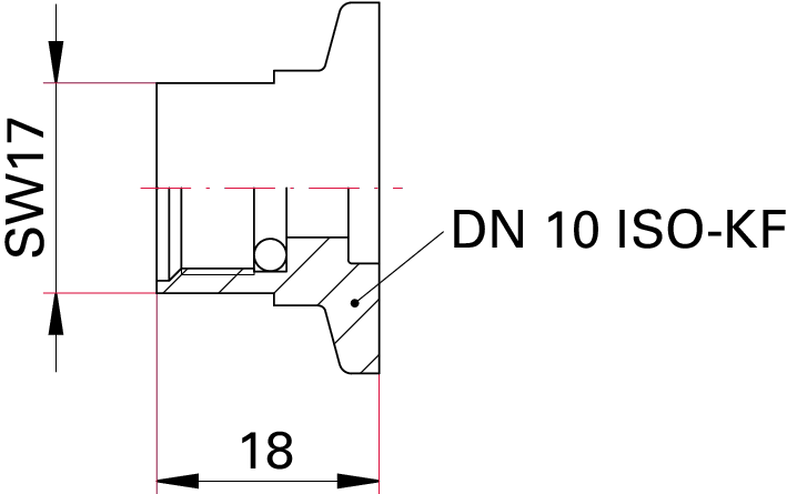 DN 10 ISO-KF 型真空接头的尺寸图纸,标注了 SW17(扳手适配尺寸)、18(关键外形尺寸),属于 ISO-KF 系列真空密封连接件的规格图,对应 DN10 规格的真空系统管路密封衔接配件,是该型号真空接头的安装适配参考图纸,助力真空设备的规范组装。
