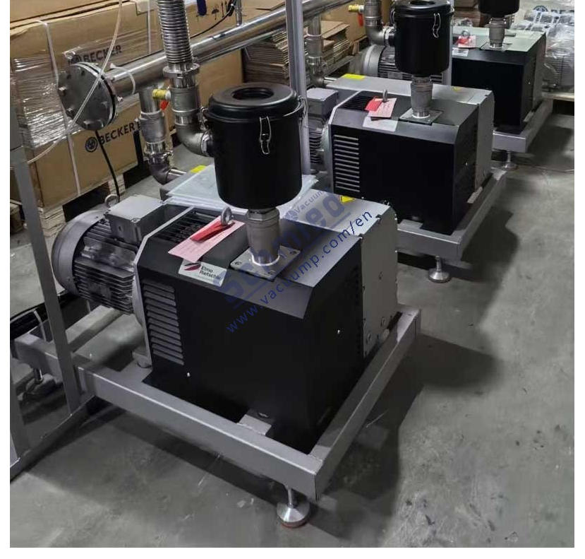 BECKER(贝克)品牌油式旋片真空泵组成的集成真空机组,为定制化工业真空系统。机组含多台贝克泵体、前置过滤器与不锈钢管路,安装于带减震脚座的机架上,运行稳定低噪,广泛适配自动化、包装、电子等场景,为集中真空应用提供高效可靠的动力支持。