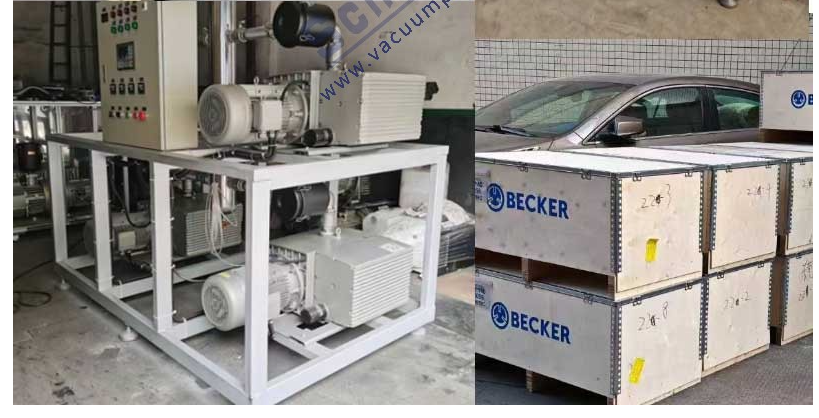 德国BECKER(贝克)真空泵及定制真空系统,左侧为集成式真空机组,搭载贝克真空泵、控制单元与过滤装置,可实现高稳定性真空供给;右侧为品牌原装设备仓储。贝克真空泵无油 / 油式机型齐全,抽气效率高、耐用可靠,适配印刷、包装、工业吸附等场景,是工业真空领域的经典设备。