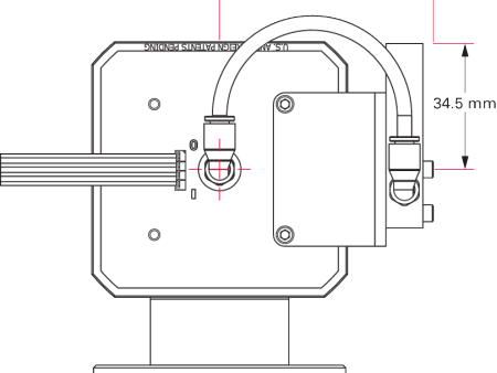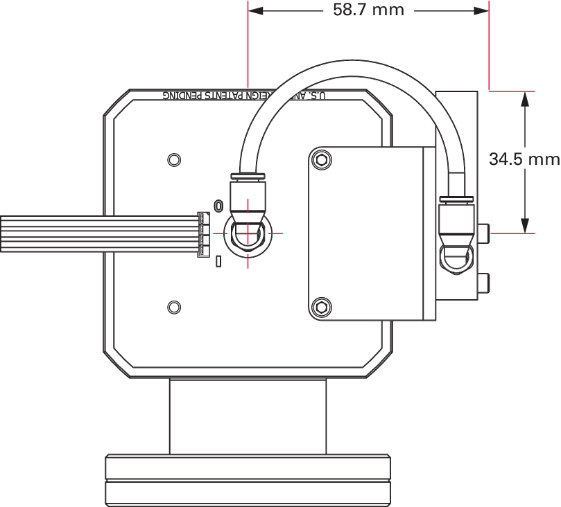 电动真空角阀的电气接口安装尺寸图,是该阀门的配套技术图纸。图中标注了 58.7mm、34.5mm 等关键安装尺寸,用于指导该阀门电气接口与相关部件的安装适配,帮助确认电气部分的安装空间与接口连接的匹配情况,是该阀门电气组件安装的重要参考图纸,可保障安装契合系统布局。