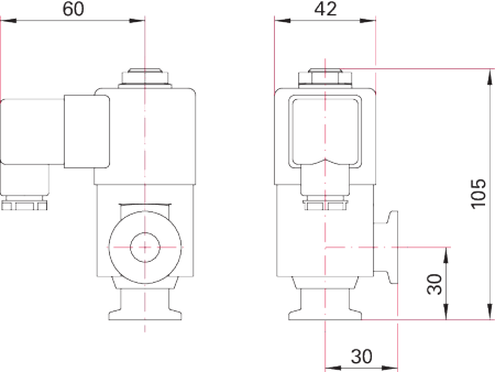 高真空电磁挡板阀(工程图纸款),以不锈钢为主体材质,配备电磁驱动部件与法兰接口,图纸标注了 60、42 等尺寸,通过电磁信号控制高真空系统的管路通断,密封性能优异,适配小型真空腔体、精密真空仪器等高真空场景,是自动化真空系统通路切换的核心控制配件,可稳定支撑精密真空环境的自动化运行需求。