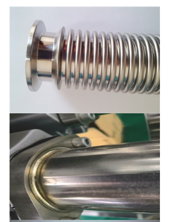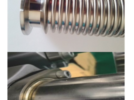 高真空不锈钢波纹管与真空精密焊接件。波纹管为 KF 快装式柔性金属软管,采用 304/316 不锈钢材质,适配超高真空系统,兼具减震与位移补偿功能;焊缝采用真空氩弧焊接工艺,成型均匀致密,漏率,保障长期稳定密封,是真空设备的关键配件。
