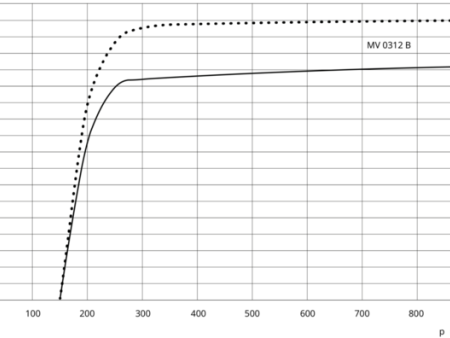 BUSCH(普旭)MINK MV 0312 B 爪式真空泵的抽速 - 压力性能曲线,展示了该型号在不同压力(单位:hPa/mbar)下的抽速变化(单位:m³/h),可辅助工业场景评估其在对应真空工况下的性能表现。